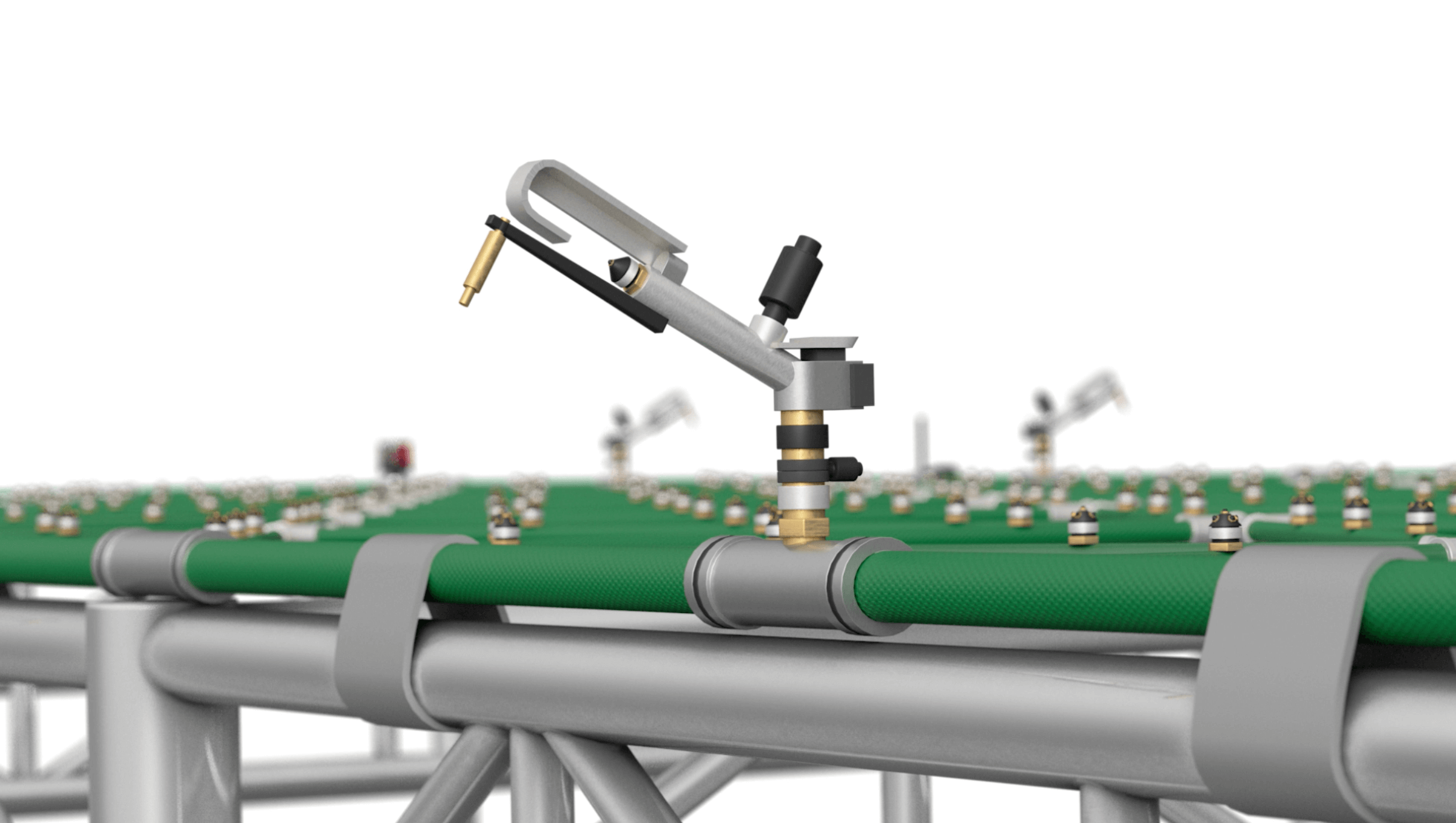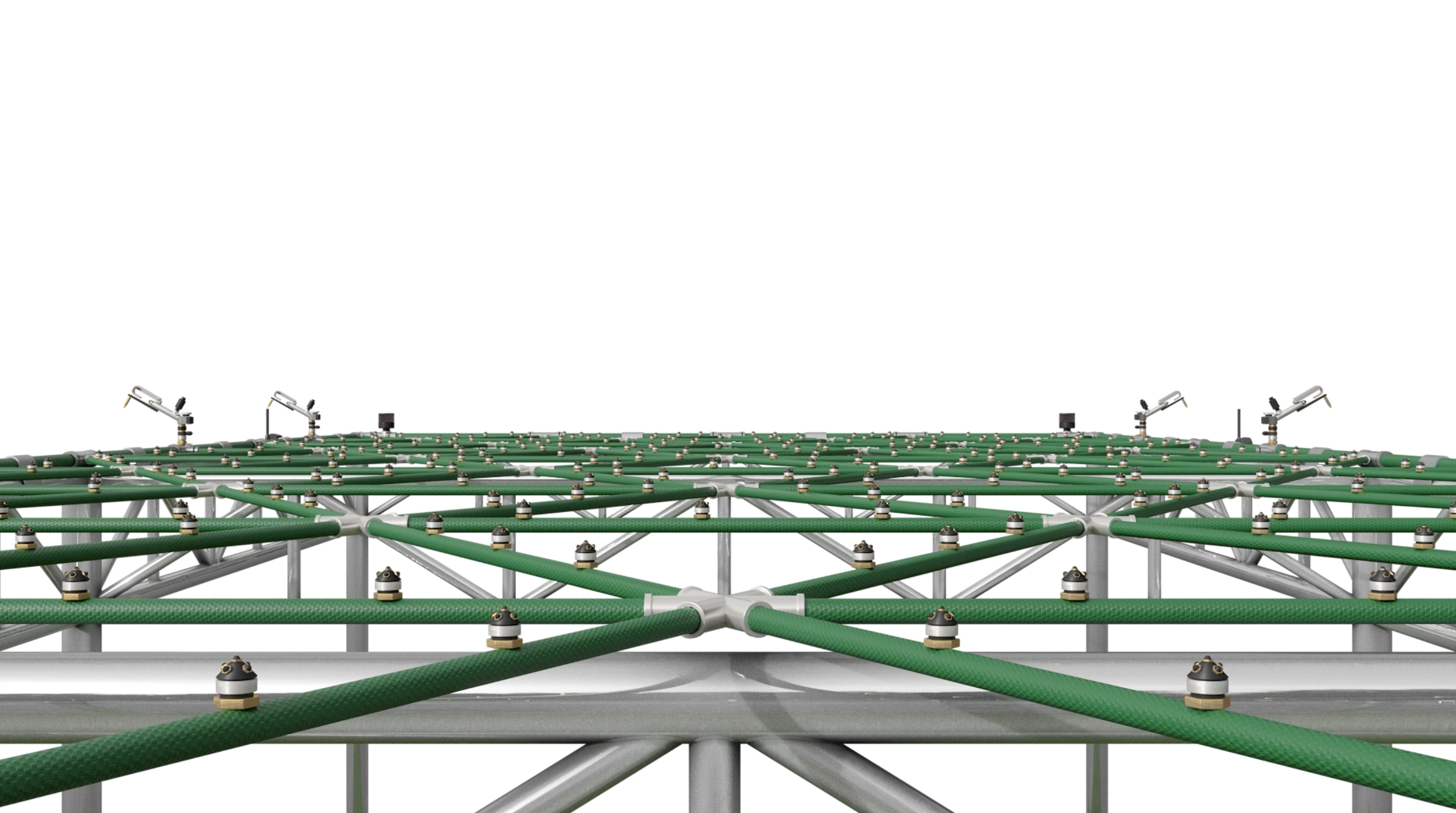 Our unique, patented hydraulic network consists of interconnected pipes that form modules, which can be easily connected. The internal pipes feature evenly distributed, high-capacity nebulizers